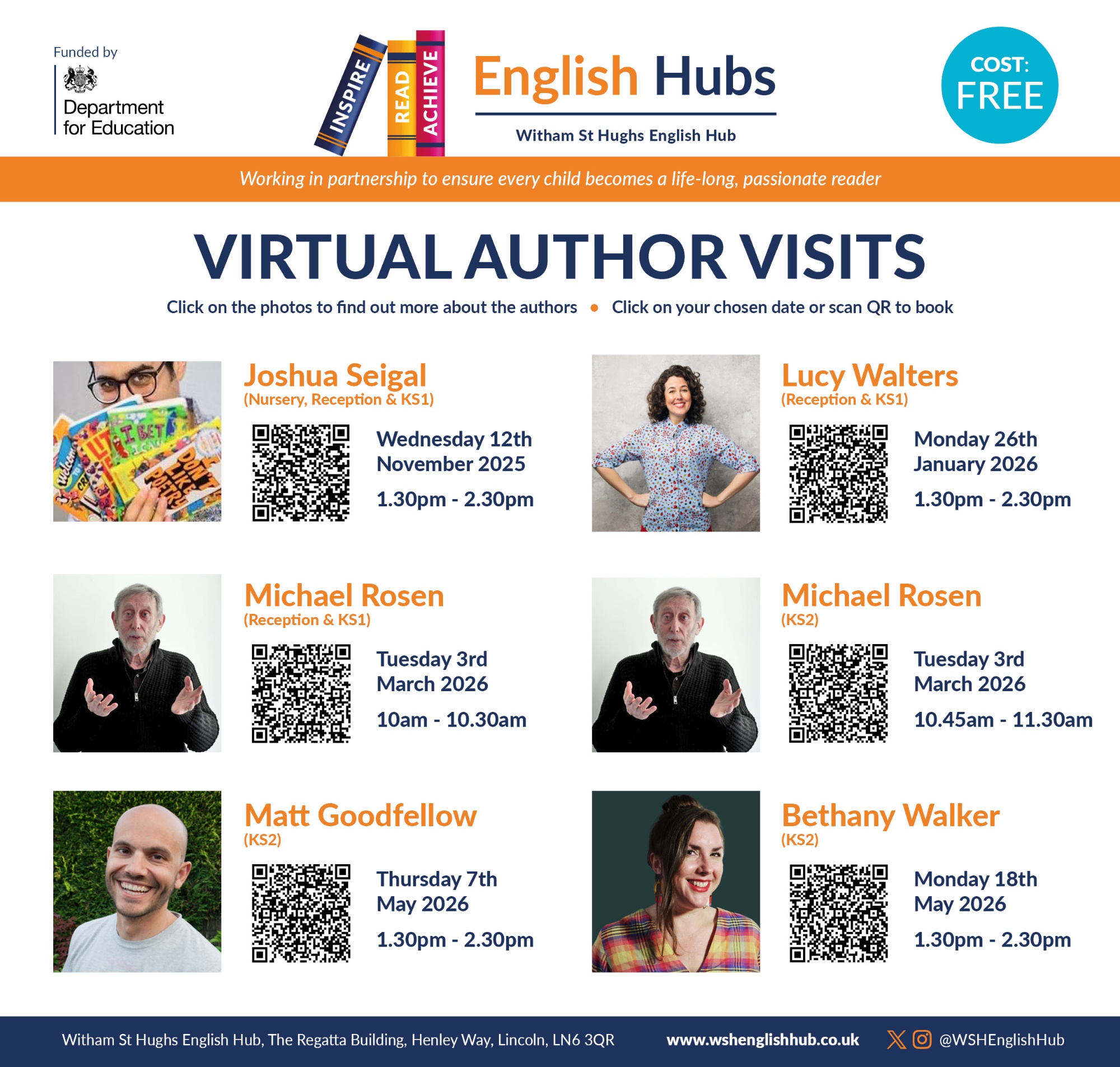 Tuesday 3rd March 2026 - Michael Rosen (Reception & KS1) Click here to book