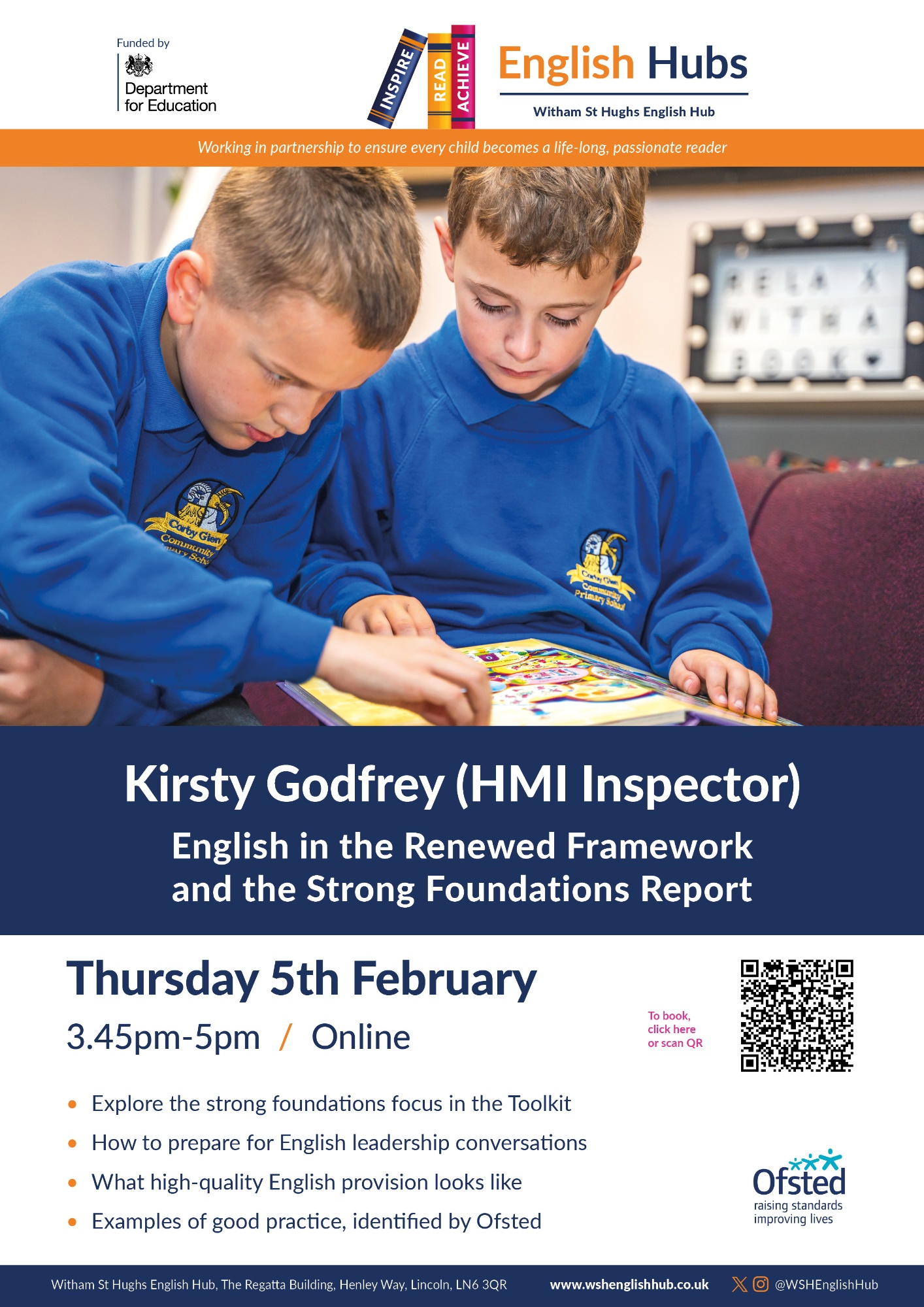 Thursday 5th February 2026 - English in the Renewed Framework - Kirsty Godfrey (HMI Inspector) Click here to book